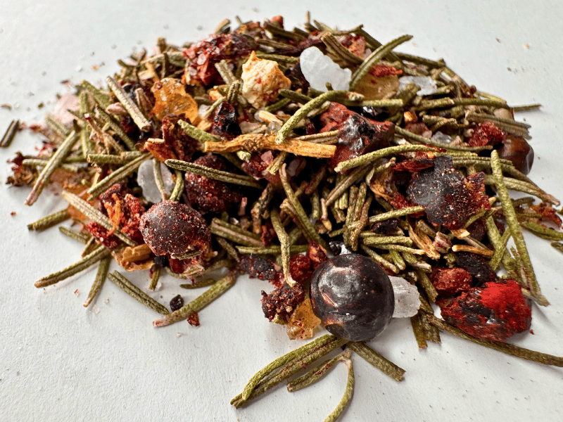Rosmarin, Wacholderbeeren, Weihrauch, Drachenblut, Angelikawurzel, Kampfer